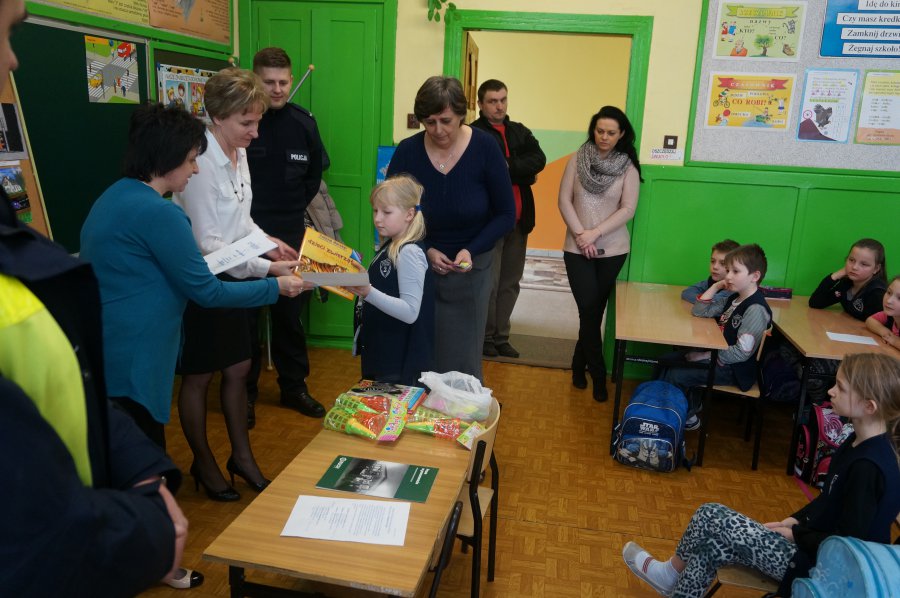 Wczoraj w Szkole Podstawowej nr 2 w Kłobucku, odbył się finał powiatowego konkursu plastycznego "Bezpieczna Droga". Zadanie uczniów biorących udział w konkursie polegało na przedstawieniu prawidłowych postaw i zachowań młodych uczestników ruchu drogowego. Wszytkie prace wykonane przez dzieci zasługiwały na wyróżnienia i nagrody. Podczas spotkania mundurowi z Wydziału Ruchu Drogowego kłobuckiej komendy pogratulowali wszystkim autorom prac konkursowych, po czym jeszcze raz przypomnieli zasady bezpieczeństwa w ruchu drogowym oraz wskazali jak należy się zachowywać w różnych niebezpiecznych sytuacjach. Na koniec uczestnicy konkursu otrzymali odblaskowe zawieszki, które pomogą im być widocznymi i bezpiecznymi użytkownikami ruchu drogowego.