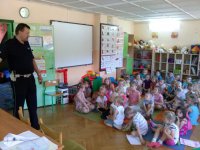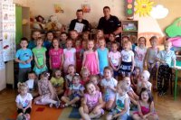 Młodszy aspirant Roman Hofman i starszy sierżant Sławomir Miarka odwiedzili wczoraj dzieci z przedszkola w Parzymiechach. Celem wizyty było przekazanie jak najwięcej informacji, jak bezpiecznie spędzić nadchodzące wakacje. Policjanci tłumaczyli dzieciom najważniejsze zasady bezpiecznego poruszania się po drodze, opowiadali o swojej pracy i radzili jak być bezpiecznym w przedszkolu, w domu i w czasie wolnym. Z całą pewnością wizyta stróżów prawa spodobała się maluchom, czego dowodem były ich rysunki wręczone policjantom.