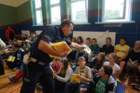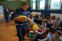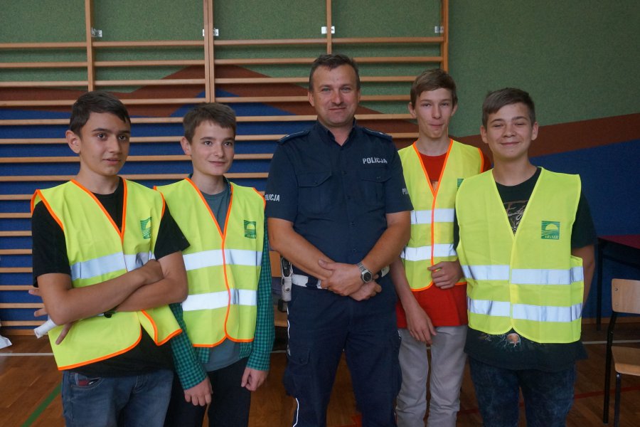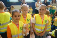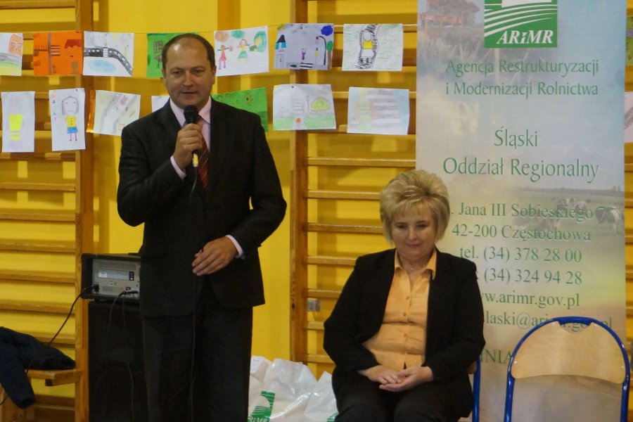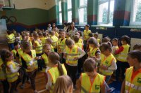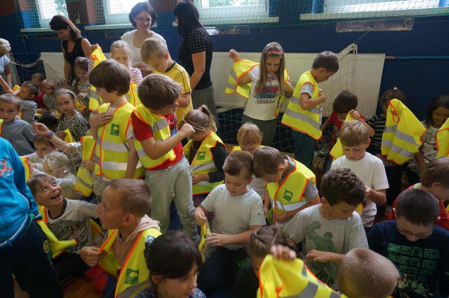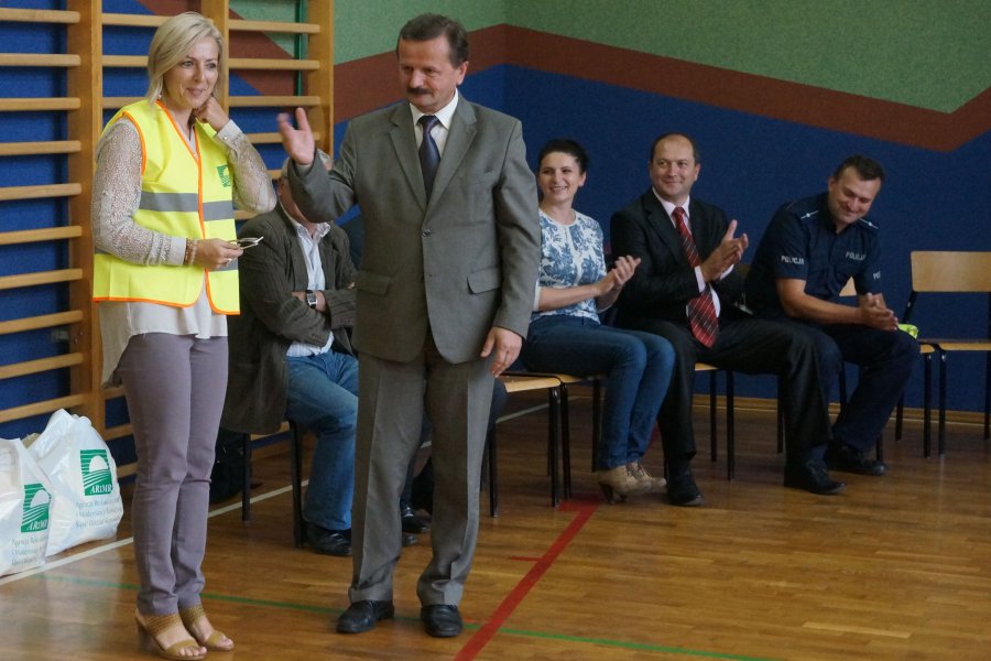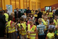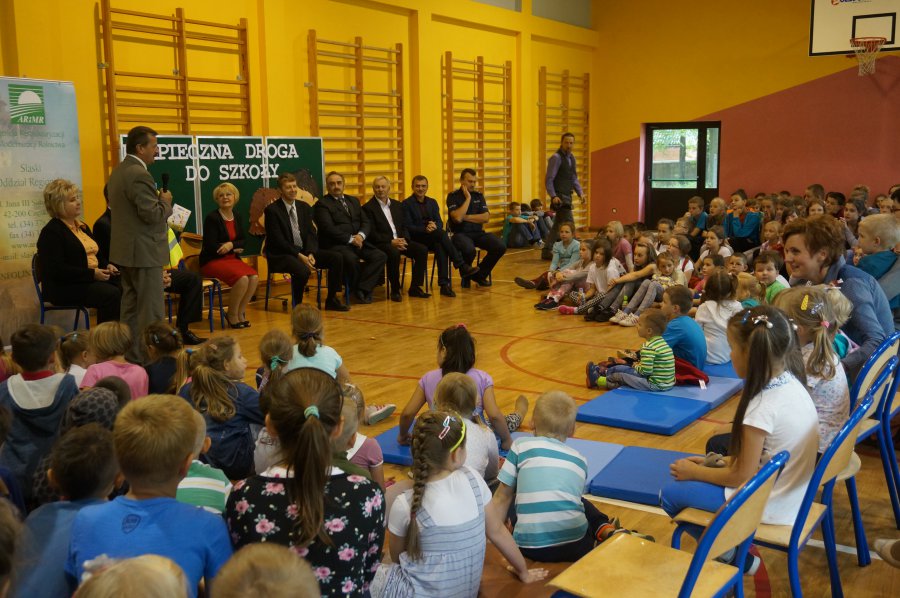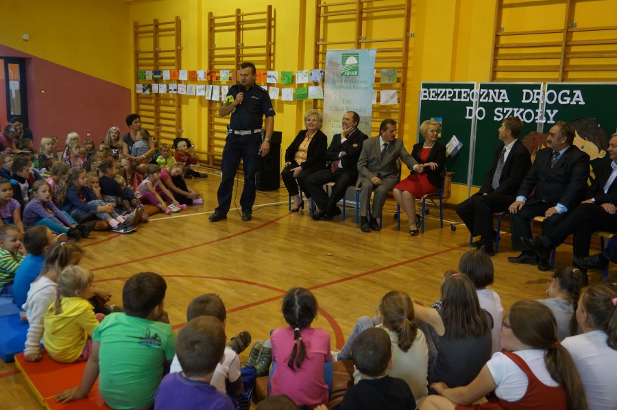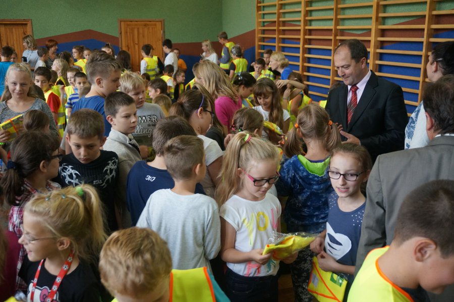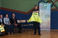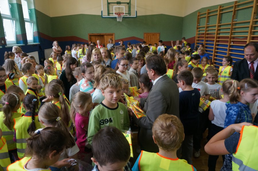 Tematem przewodnim dzisiejszych spotkań było hasło „Bezpieczne dzieci na drogach”. Uczniowie wysłuchali wielu cennych porad, a policjant wydziału ruchu drogowego przypomniał również o tym, jak ważne jest noszenie kamizelek odblaskowych, czy odzieży wyposażonej w takie elementy. Mł. asp. Roman Hofman, wspólnie z przedstawicielem Agencji Restrukturyzacji i Modernizacji Rolnictwa - Dyrektorem Śląskiego Oddziału Regionalnego, dyrekcją szkół, kierowniczką kłobuckiego KRUS-u oraz samorządowcami, wręczali dzieciom kamizelki odblaskowe. Dzięki nim blisko 700 uczniów będzie lepiej widocznych, gdy idą do szkoły lub z niej wracają. Niestety, nie wszędzie są chodniki i czasem dzieci muszą poruszać się przy krawędzi jezdni. Teraz, dzięki odblaskowym kamizelkom, najmłodsi uczestnicy ruchu drogowego będą widoczni z daleka.