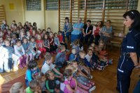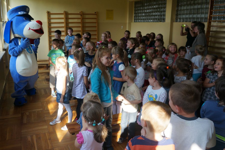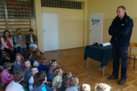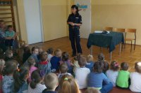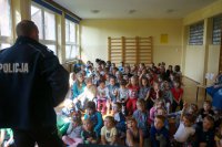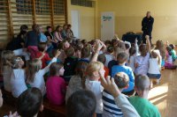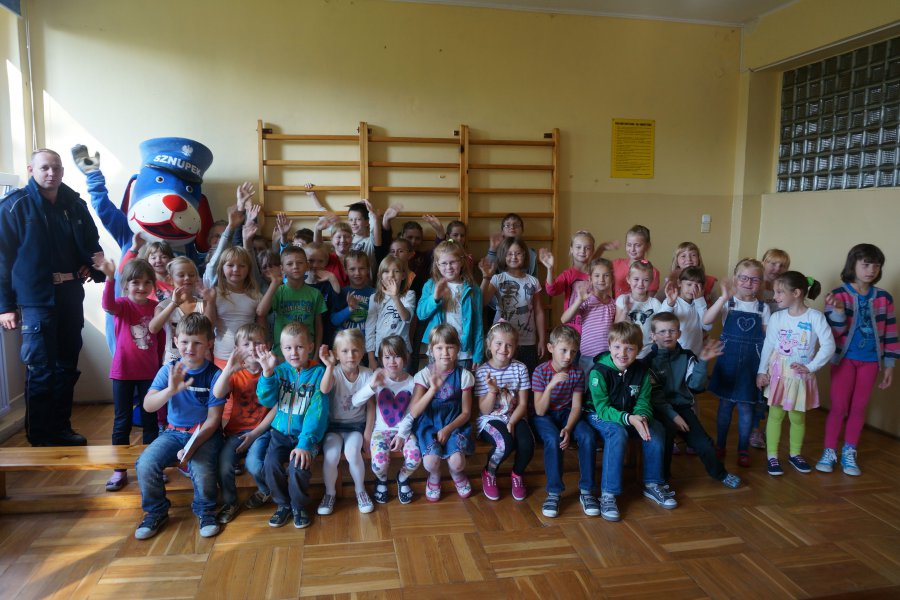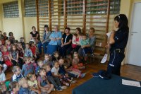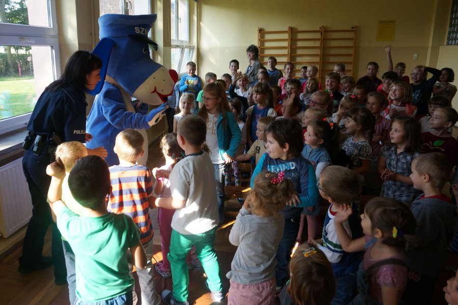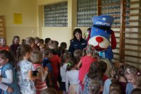 Stróże prawa z Kłobucka opowiadali dzisiaj przedszkolakom i uczniom najmłodszych klas z Więcek o zasadach, dzięki którym nie spotka ich żadne niebezpieczeństwo w szkole, domu czy podczas zabaw. Mundurowi uczyli też dzieci, jak ważne jest odpowiednie dbanie o zwierzęta, których nie można traktować jak rzeczy. Policjanci apelowali o przemyślane decyzje o nabyciu psa, kota czy innego zwierzęcia. Jak zwykle największym zainteresowaniem cieszył się Sznupek, z którym dzieci szybko się zaprzyjaźniły i nie odstępowały go nawet na chwilę. Każde dziecko miało okazję poznać maskotkę śląskiej policji i zrobić sobie z nim pamiątkowe zdjęcie. Dzieci mogły też z bliska zobaczyć sprzęt wykorzystywany przez policjantów w codziennej służbie. Wszystkie maluchy obiecały, że będą stosować się do poznanych zasad bezpiecznego zachowania na drodze do szkoły oraz podczas spędzania wolnego czasu. W nagrodę za aktywny udział w pogadance dzieci otrzymały plany lekcji z z logo kampanii „Nie reagujesz - akceptujesz”.