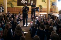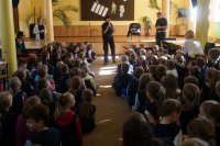 Policjanci z Kłobucka przeprowadzili dzisiaj kolejną pogadankę na temat bezpieczeństwa. Mundurowi uczyli dzieci bezpiecznych zachowań w domu, szkole i na drodze. Uczniowie mieli też okazję z bliska zobaczyć policyjny sprzęt, wykorzystywany przez stróżów prawa w codziennej służbie.