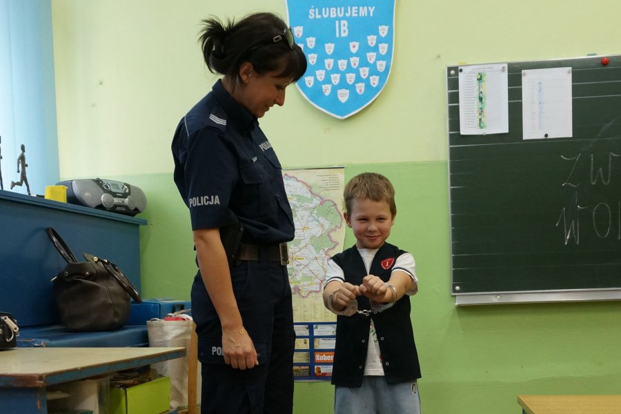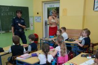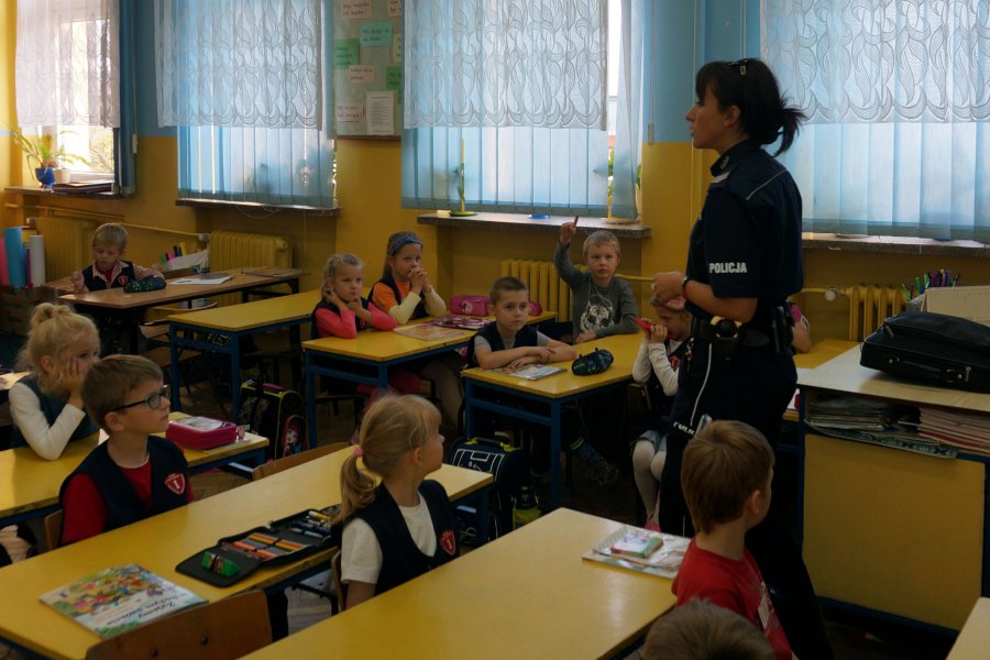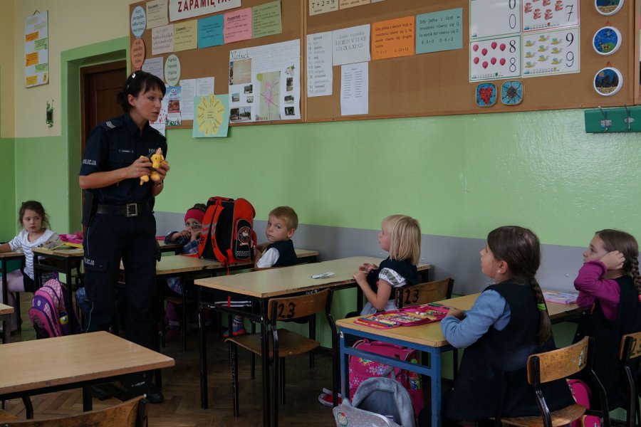 Policjantka z Kłobucka odwiedziła wczoraj cztery najmłodsze klasy Szkoły Podstawowej nr 1. Maluchy wysłuchały pogadanki, jak prawidłowo i bezpiecznie poruszać się po drodze oraz co zrobić, aby być bezpiecznym w domu i szkole. Aby dzieci zapamiętały, jak ważne jest zapinanie pasów bezpieczeństwa w samochodzie i jazda w foteliku ochronnym czy też na podstwce, policjantka wręczyła każdej z klas maskotkę Pancernika Gustawa, która promuje kampanię propagującą bezpieczne przewożenie dzieci w samochodach, realizowaną przez Instytut Transportu Samochodowego. Podczas spotkania, pierwszaki miały też okazję dowiedzieć się, na czym polega praca policjantów i z bliska przyjrzeć się wyposażeniu mundurowych podczas codziennej służby. Każde dziecko otrzymało serduszko kampanii „Kochasz? Powiedz STOP Wariatom Drogowym”. Uczniowie kolorowali je i zamieszczali na nich dedykacje dla osób, które kochają. Kierowcy, którzy zawieszą w swoim samochodzie takie serduszko z pewnością będą jeździli bardziej ostrożnie. W prowadzeniu zajęć policjantce pomagały uczennice klasy o profilu ogólnopolicyjnym Zespołu Szkół na Zagórzu.