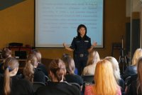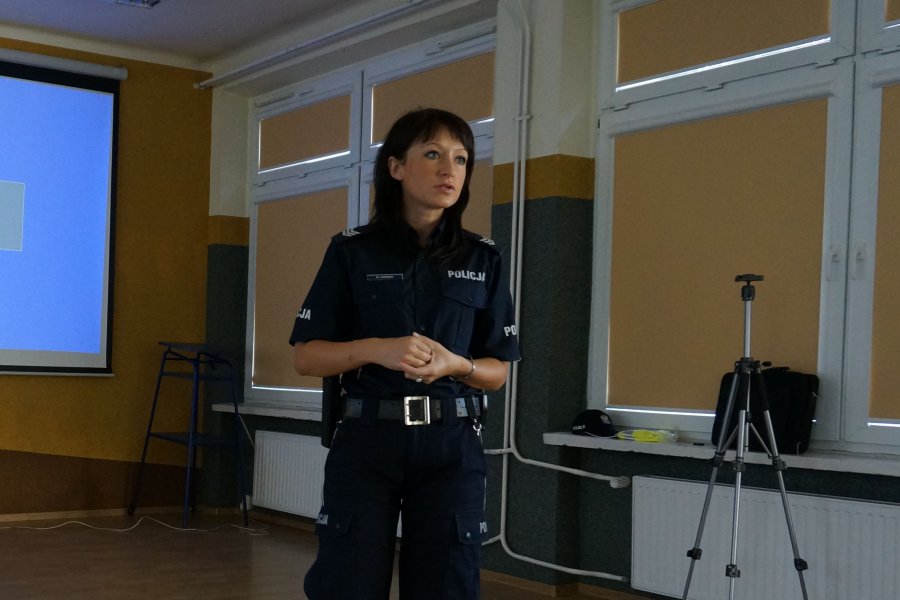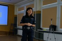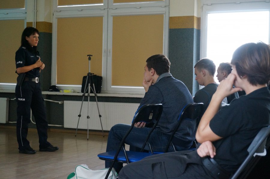 Uczniów klas o profilu ogólnopolicyjnym z Zespołu Szkół nr 1 w Kłobucku odwiedziła wczoraj oficer prasowy sierż. szt. Marta Ladowska, która przybliżyła im zarys swojej pracy, a w szczególności zasady kontaktów Policji z mediami. W programie nauczania licealistów znajdują się między innymi zajęcia z podstaw prawa karnego, wykroczeń i ruchu drogowego. System ich kształcenia to jednak nie tylko teoria, a także praktyka, dlatego najciekawszym elementem wczorajszego spotkania była dla młodzieży część polegająca na nagraniu krótkiej wypowiedzi przed kamerą. Licealiści z zaciekawieniem oglądali swoje występy i mieli okazję przekonać się, jak jest to trudne i stresujące.