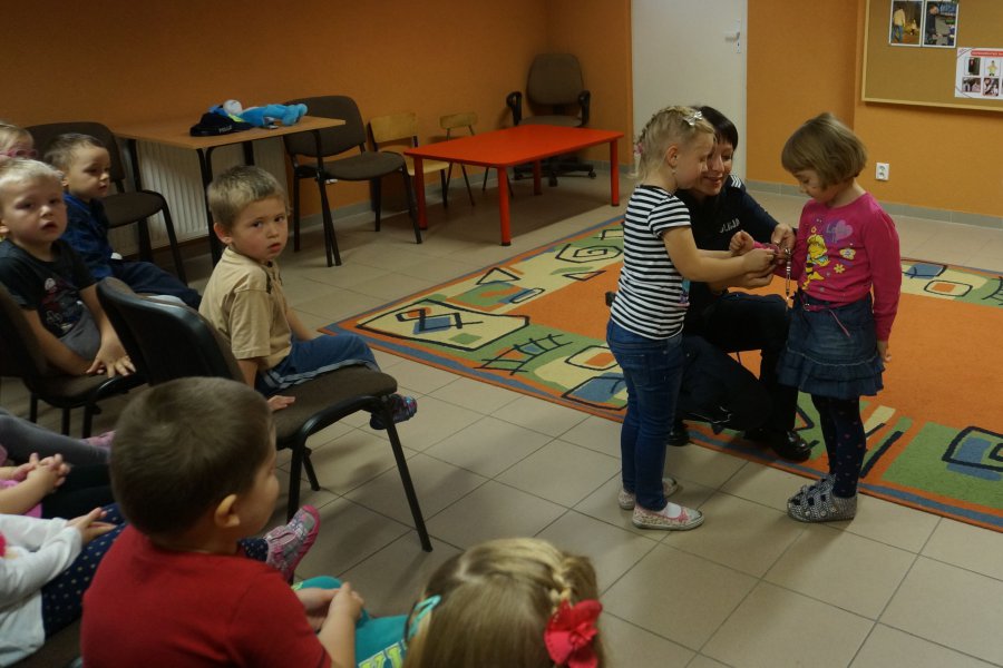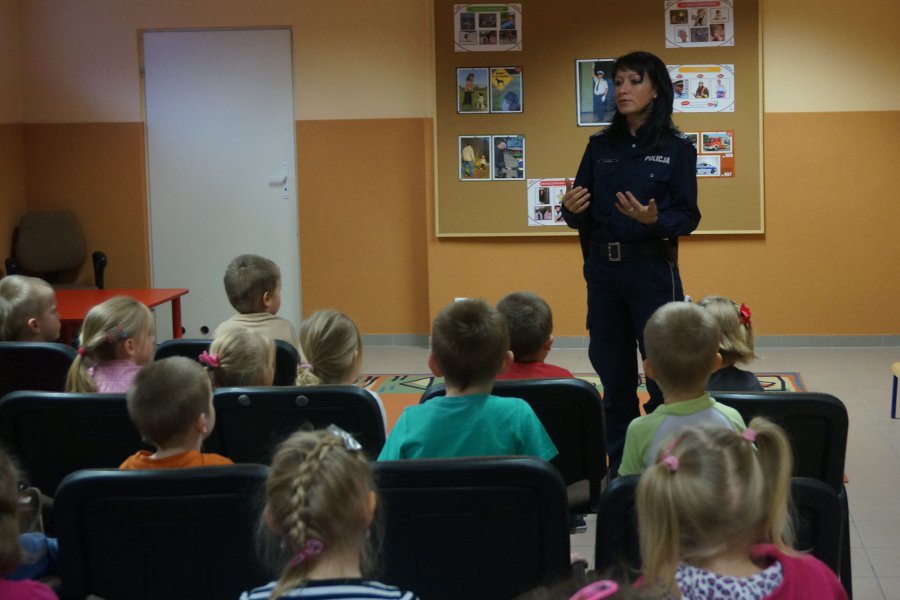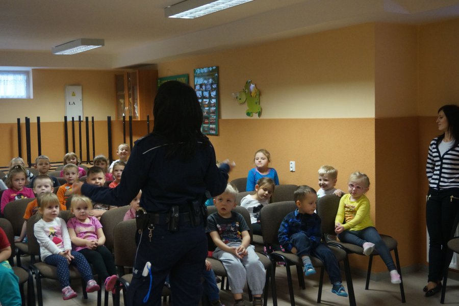 W trakcie spotkania policjantka opowiadała najmłodszym mieszkańcom Truskolas o swojej pracy i wyposażeniu do codziennej służby. Maluchy miały okazję z bliska zobaczyć policyjny pistolet, kajdanki czy "lizak", czyli tarczę do zatrzymywania pojazdów. Dzieci słuchały z uwagą wskazówek, co robić, gdy same zostaną w domu, albo spotkają na swojej drodze agresywnego psa. Przedszkolaki pochwaliły się, że znają już podstawowe przepisy ruchu drogowego, śpiewając piosenkę o tym, jak prawidłowo poruszać się po drodze. Na zakończenie prelekcji na salę weszła sympatyczna maskotka śląskiej policji - Sznupek, z którym wszyscy zrobili sobie pamiątkowe zdjęcie.