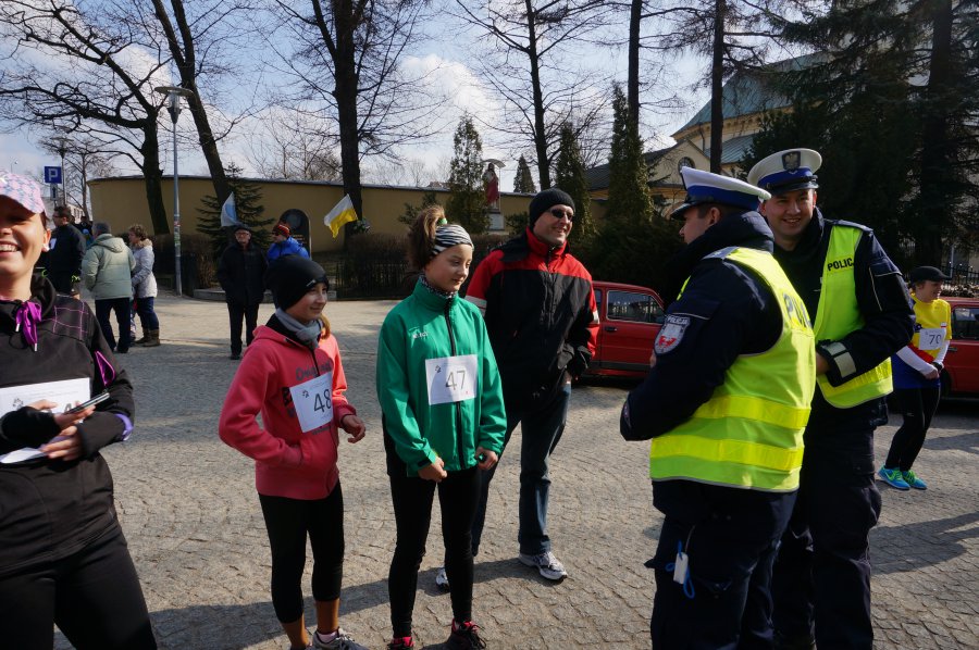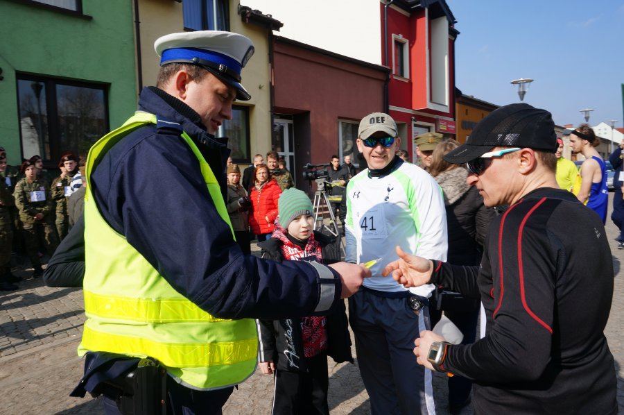 W organizowanym wczoraj biegu, będącym częścią ogólnopolskiego projektu "Tropem Wilczym", podczas obchodów Narodowego Dnia Pamięci Żołnierzy Wyklętych, wzięło udział wielu zawodników, w tym dzieci i ich opiekunowie. To właśnie najmłodsi mogli liczyć, jeszcze przed rozpoczęciem zawodów, na drobne upominku od mundurowych – policjanci rozdawali im odblaskowe zawieszki, zachęcając jednocześnie do ich noszenia. Trasa zawodów prowadziła od Rynku im. Jana Pawła II, aż do przejazdu kolejowego na ulicy Zakrzewskiej. Kłobuccy stróże prawa, przy współudziale funkcjonariuszy Straży Pożarnej, czuwali nad ładem, porządkiem i bezpieczeństwem w ruchu kołowym i pieszym. Wśród uczestników biegu znalazł się reprezentant komendy – aspirant sztabowy Tomasz Parkitny. Biegowi towarzyszył pokaz umundurowania i uzbrojenia grupy rekonstrukcyjnej Mokra’39 oraz pokazy klas mundurowych Zespołu Szkół nr 3 w Kłobucku.