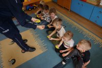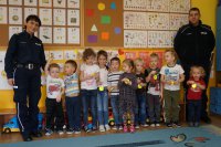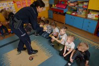 Policjanci z Kłobucka prowadzą działania ukierunkowane na poprawę bezpieczeństwa niechronionych uczestników ruchu drogowego. Jednym z założeń trwającej kampanii „Idź-Jedź-Żyj” jest edukacja najmłodszych uczestników ruchu drogowego w zakresie przestrzegania przepisów prawa, popularyzowanie właściwych zachowań w strefach zamieszkania oraz na pozostałych drogach, a także zachęcanie do noszenia elementów odblaskowych na codziennym ubiorze. Właśnie te informacje przekazali dzisiaj policjanci z Kłobucka dzieciom z przedszkola w Nowej Wsi. Funkcjonariusze uczyli również, jak należy się zachować i jaką postawę przyjąć w kontakcie z groźnym psem oraz co zrobić, by być bezpiecznym w domu i podczas zabaw w czasie wolnym. Najmłodsi mogli również z bliska obejrzeć kajdanki, a na koniec spotkania otrzymali odblaskowe zawieszki, które obiecali nosić przy kurtkach i plecakach. Wizytę stróżów prawa będą też przypominały kodeksy drogowej dla najmłodszych, które w ciekawy sposób przedstawiają najważniejsze zasady bezpiecznego zachowania na drodze.