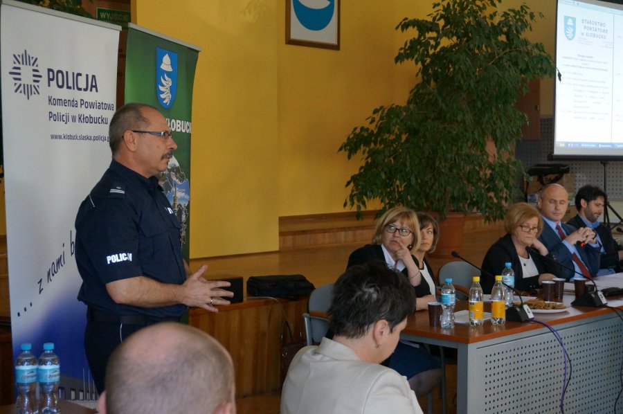 Piątkowe spotkanie z przedstawicielami szkół z powiatu kłobuckiego miało na celu uświadomienie, jaką rolę pełnią internet i komputer w rozwoju dzieci i młodzieży, jak bardzo są one przydatne i pomocne, ale też jakie zagrożenia mogą się z nimi wiązać. Debatę rozpoczął wicestarosta,a następnie głos zabrał Naczelnik Wydziału Prewencji podinsp. Andrzej Tobolski, po nim natomiast występowali kolejni prelegenci, w tym przedstawicielka Powiatowej Poradni Psychologiczno-Pedagogicznej w Kłobucku, pani Kierownik Specjalistycznego Ośrodka diagnozy i Rehabilitacji Dzieci i Młodzieży z wadą słuchu, specjalista psychiatra dzieci i młodzieży oraz pani Kierownik Poradni Profilaktyki, Leczenia i Terapii Uzależnień Stowarzyszenia MONAR w Częstochowie. Wszyscy nawiązywali w swoich wypowiedziach do tematu dorastania dzieci i młodzieży w cyfrowym świecie oraz przekazywali cenne wskazówki, jak zapobiegać lub pokonać uzależnienie od komputera czy Internetu. Policjanci tłumaczyli natomiast, czym jest cyberprzemoc, jak się przed nią bronić i gdzie szukać pomocy, kiedy staniemy się jej ofiarą. Nie zabrakło także rad, co zrobić, gdy ktoś oszuka nas podczas zakupów przez internet oraz jak reagować na inne zagrożenia w sieci, mogące prowadzić do konfliktu z prawem.