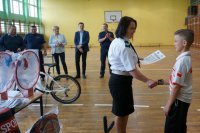 Wczoraj w Zespole Szkół w Truskolasach odbyły się powiatowe eliminacje do Ogólnopolskiego Turnieju Bezpieczeństwa w Ruchu Drogowym. W rywalizacji wzięli udział uczniowie z 5 szkół podstawowych i 6 gimnazjów powiatu kłobuckiego. Szkoły były reprezentowane przez 3 i 4-osobowe drużyny. Konkurs dzielił się na dwa etapy. W pierwszym etapie zawodnicy pisali test ze znajomości przepisów ruchu drogowego oraz umiejętności udzielania pierwszej pomocy przedmedycznej. Następnie w drugim etapie każdy uczeń musiał przejechać na rowerze tor sprawnościowy, zbierając jak najmniej punktów karnych. Nad przebiegiem zawodów czuwali policjanci kłobuckiej drogówki i nauczyciele ze szkoły w Truskolasach, a pomagali im uczniowie z klas policyjnych Zespołu Szkół nr 1 w Kłobucku, działający w strukturach Młodzieżowej Służby Ruchu Drogowego. Cenne nagrody rzeczowe, (w tym w dla zdobywców pierwszych miejsc w kategorii indywidualnej – rowery), puchary i dyplomy wręczali: Komendant Powiatowy Policji w Kłobucku insp. Zbigniew Legodziński, Naczelnik Wydziału Ruchu Drogowego Komendy Powiatowej Policji w Kłobucku kom. Maciej Blukacz, pani Dyrektor Zespołu Szkół w Truskolasach Małgorzata Zatyka oraz niektórzy z fundatorów nagród.