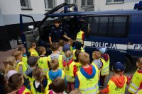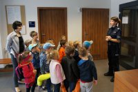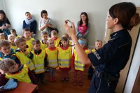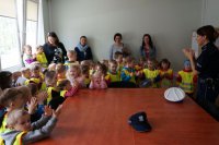 W ostatnich dniach komendę policji odwiedziły dzieci z kłobuckich przedszkoli. Sierżant sztabowy Marta Ladowska opowiedziała maluchom na czym polega praca policjantów oraz pokazała jak są wyposażeni do codziennej służby. Nie zabrakło też pogadanki o podstawowych zasadach bezpieczeństwa. Policjantka tłumaczyła dzieciom, dlaczego warto nosić odblaski i jak prawidłowo przechodzić przez przejście dla pieszych oraz co robić, aby być bezpiecznym na drodze. Na zakończenie spotkania dzieci obejrzały radiowóz, do którego mogły wsiąść i przy którym zrobiły sobie pamiątkowe zdjęcie.
