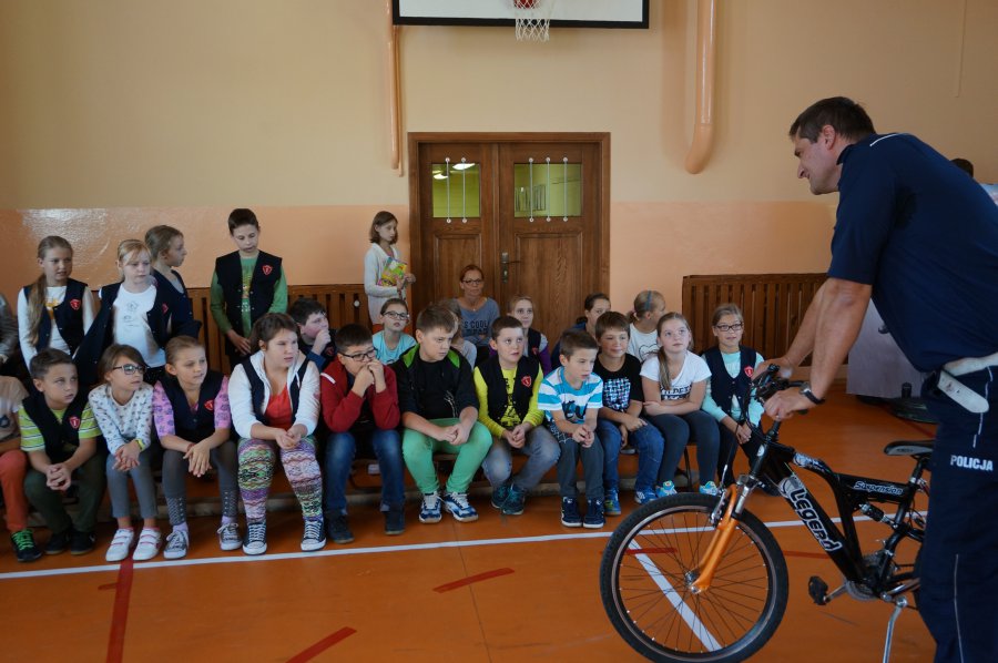 Zajęcia „Rowerem bezpiecznie do celu”, zorganizowane podczas trwającej kampanii „Rok Pieszego 2015”, odbyły się wczoraj w Szkole Podstawowej nr 1 w Kłobucku. Dzięki zaangażowaniu przedstawiciela Wydziału Ruchu Drogowego Komendy Wojewódzkiej Policji w Katowicach aspiranta Tomasza Bratka, który przywiózł materiały edukacyjne, dzieci miały okazję poznać zasady bezpiecznego poruszania się pieszych i rowerzystów po drodze w praktyce - w ustawionym na sali gimnastycznej „mobilnym miasteczku ruchu drogowego”. Czwartoklasiści wysłuchali też pogadanki o bezpieczeństwie, a najbardziej aktywni otrzymali pamiątkowe odblaski, dzięki którym będą lepiej widoczni na drodze. W organizację zajęć włączyła się młodzież z klas o profilu policyjnym z kłobuckiego Zagórza, działająca w strukturach Młodzieżowej Służby Ruchu Drogowego. Licealiści, pod czujnym okiem nauczycielki, pomagali policjantom w przygotowaniu spotkania z dziećmi, nabywając w ten sposób doświadczenie i mogąc bliżej przyjrzeć się pracy mundurowych.