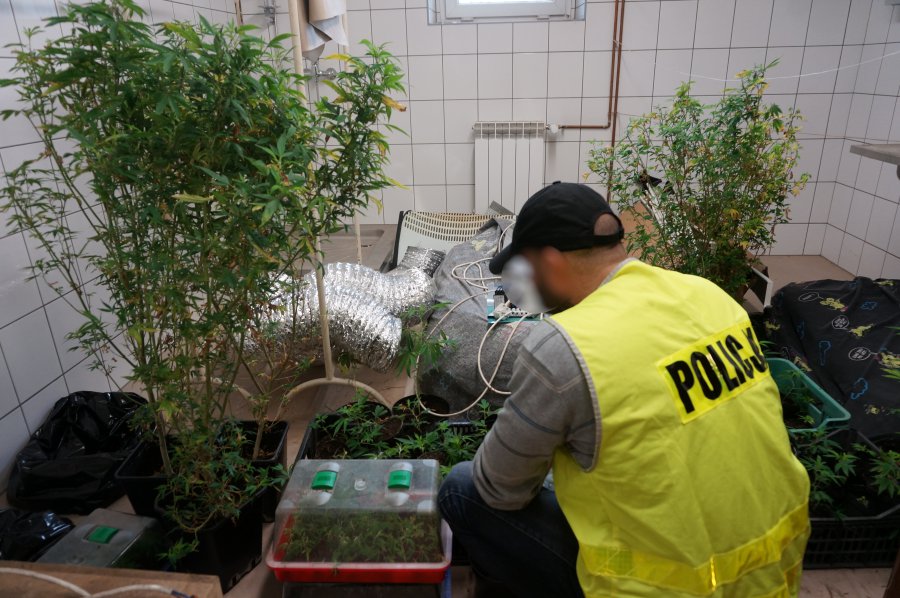 Policjanci zwalczający zorganizowaną przestępczość narkotykową z Centralnego Biura Śledczego Policji Zarządu w Katowicach natrafili w ostatnim czasie na trop 52-letniego mieszkańca powiatu kłobuckiego, który w swoim domu miał uprawiać konopie indyjskie. We wtorek rano, wspólnie ze śledczymi z Kłobucka, stróże prawa przeszukali mieszkanie podejrzanego i wtedy okazało się, że mężczyzna ten w piwnicy swojego domu posiada sporą plantację. Policjanci odkryli, że pomieszczenie to zostało odpowiednio przystosowane i wyposażone w specjalne lampy i wentylatory. Zaadoptowany również w tym celu strych budynku, służył natomiast za suszarnię. Policjanci zabezpieczyli łącznie prawie 500 krzaków konopi indyjskich w różnym stadium wzrostu oraz blisko 5 kilogramów suszu marihuany. Wczoraj zatrzymany usłyszał zarzuty uprawy i posiadania znacznej ilości narkotyków, za co grozi nawet 8 lat więzienia.