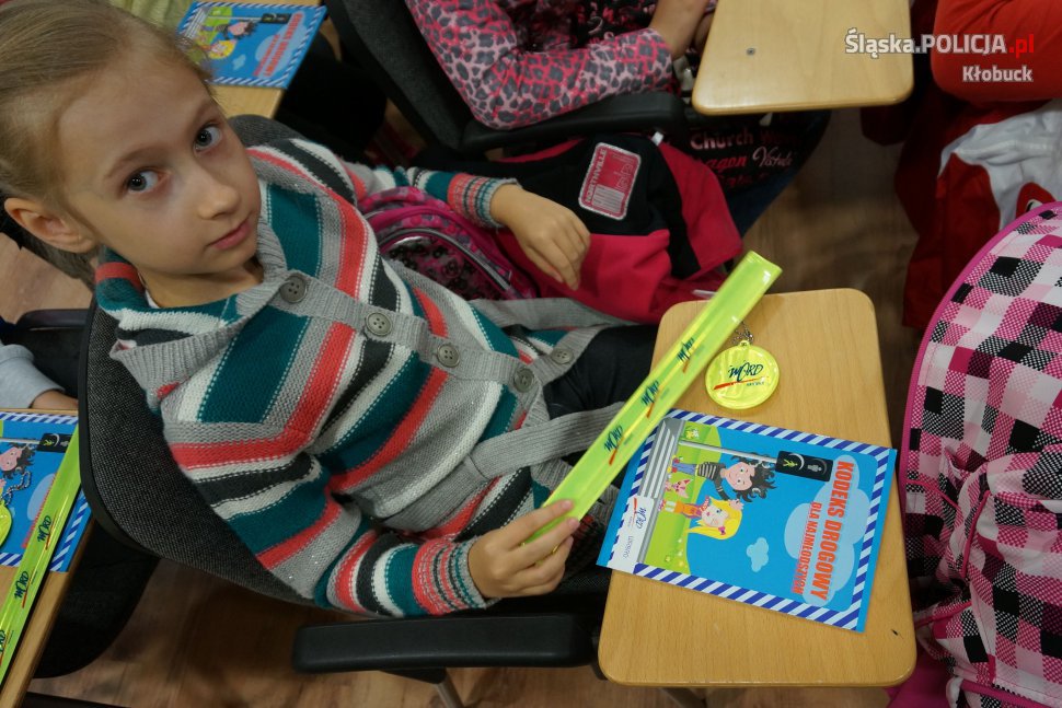 Wczoraj kłobucką komendę odwiedzili uczniowie Szkoły Podstawowej nr 1 w Krzepicach. Dzieci mogły zobaczyć na czym polega codzienna praca policjantów. Nie zabrakło również profilaktycznej pogadanki dotyczącej bezpieczeństwa w szkole oraz w miejscu zamieszkania. Najmłodsi przypomnieli sobie podstawowe zasady obowiązujące w ruchu drogowym – młodzi goście oglądali film na ten temat. W trakcie spotkania, każdy z uczniów otrzymał odblaskową opaskę na rękę, przywieszkę oraz kodeks drogowy dla najmłodszych.Tradycyjnie najwięcej emocji wzbudził policyjny sprzęt wykorzystywany w codziennej pracy funkcjonariuszy. Na zakończenie spotkania dzieci obejrzały radiowóz, do którego mogły wsiąść i przy którym zrobiły sobie pamiątkowe zdjęcie.