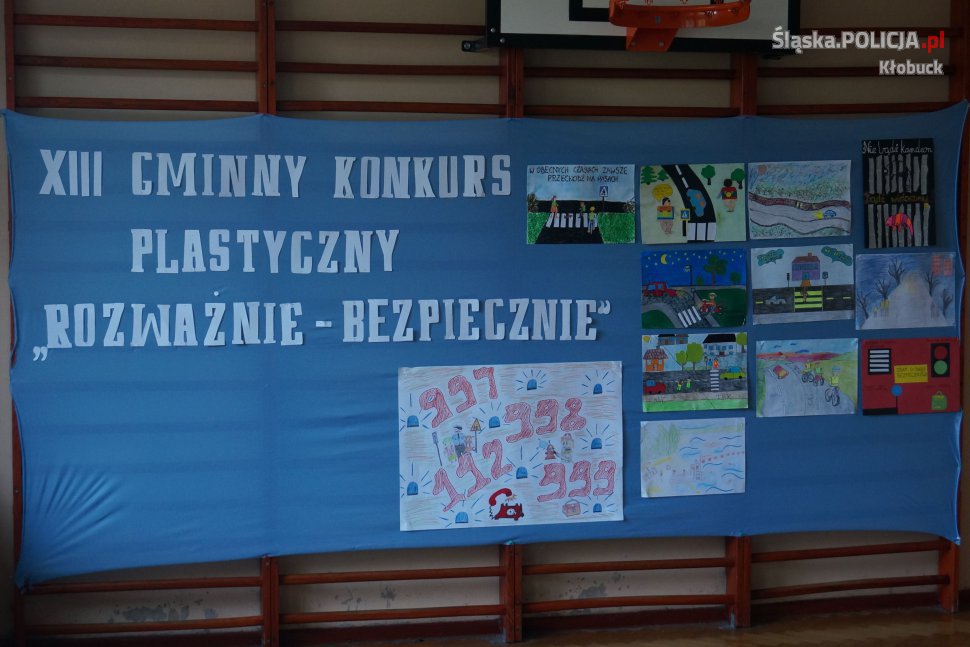 We wtorek kłobuccy mundurowi odwiedzili Szkołę Podstawową w Wilkowiecku. Wizyta policjantów związana była z finałem XIII Gminnego konkursu plastycznego „Rozważnie – Bezpiecznie”. Tematem przewodnim konkursu było bezpieczeństwo w ruchu drogowym a w szczególności postępowanie w myśl zasady "WIDOCZNY=BEZPIECZNY".