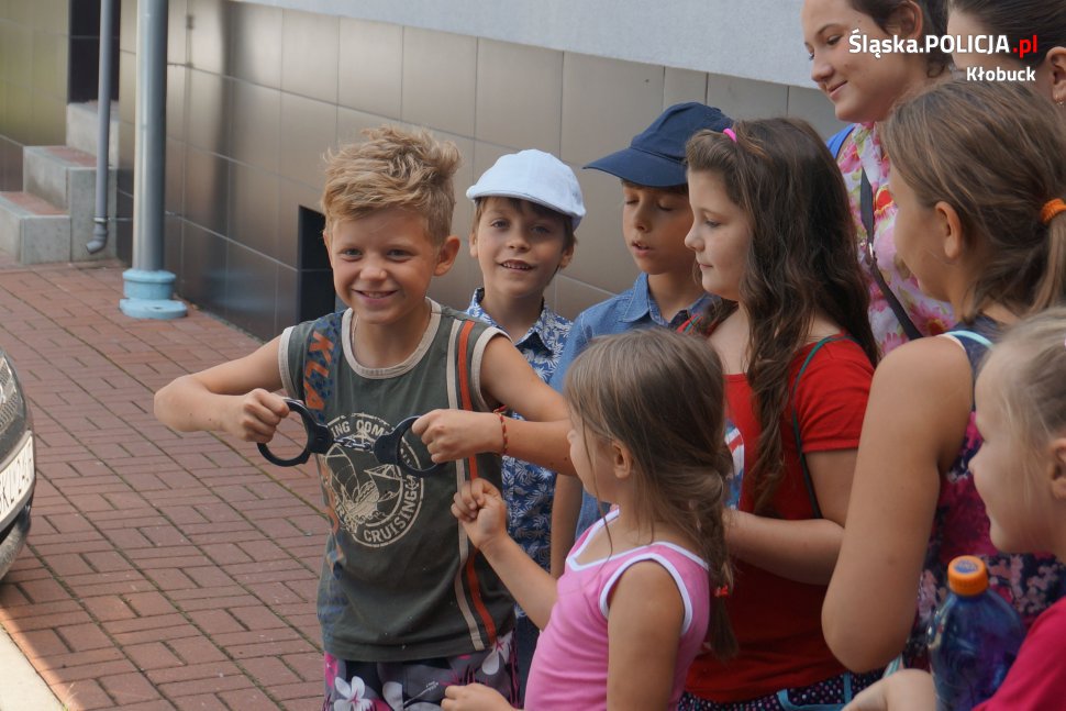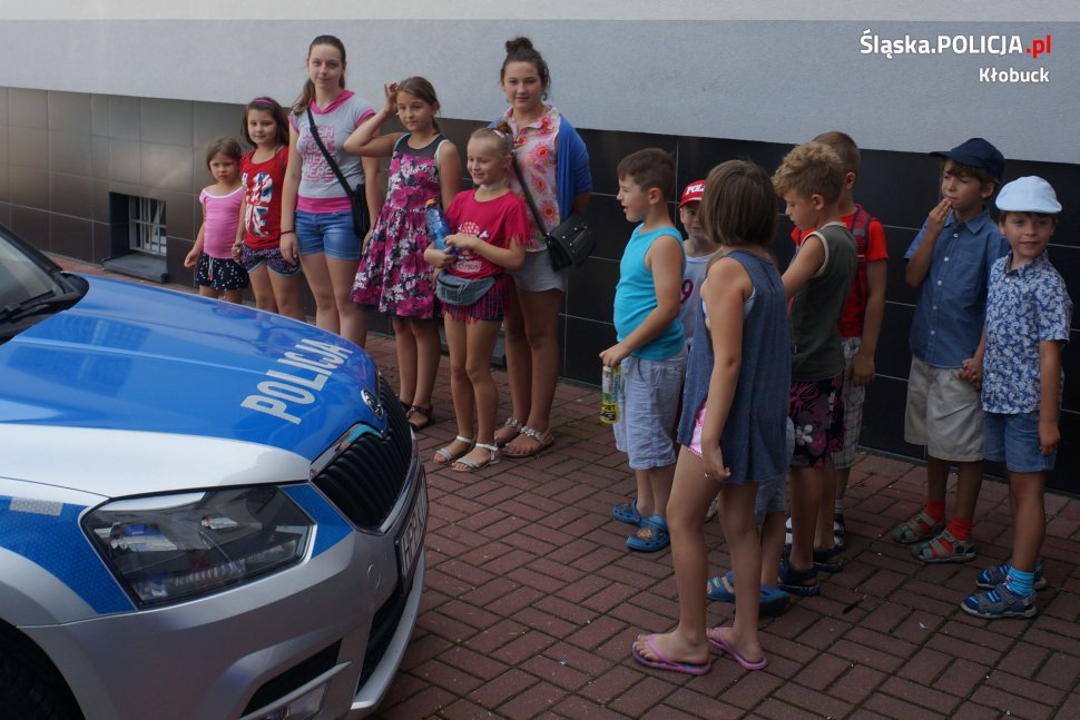 W piątek w ramach akcji „Kręci mnie bezpieczeństwo … w wakacje” naszą komendę odwiedziły dzieci spędzające wakacje z kłobuckim MOK-iem. Mundurowi zaprezentowali sprzęt policyjny wykorzystywany w codziennej służbie oraz przekazywali wiedzę na temat tego jak bezpiecznie spędzić wakacje. Szczególną uwagę zwrócono na zasady bezpiecznego zachowania w rejonie zbiorników wodnych i kąpielisk.