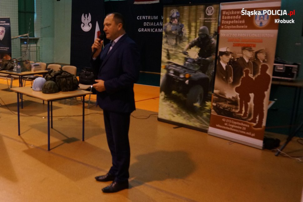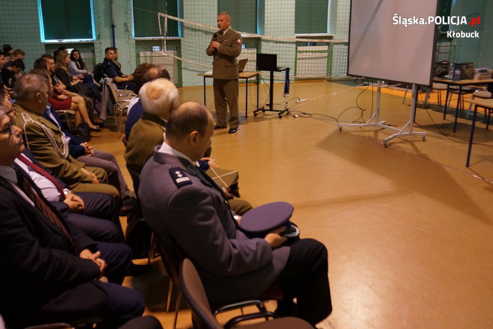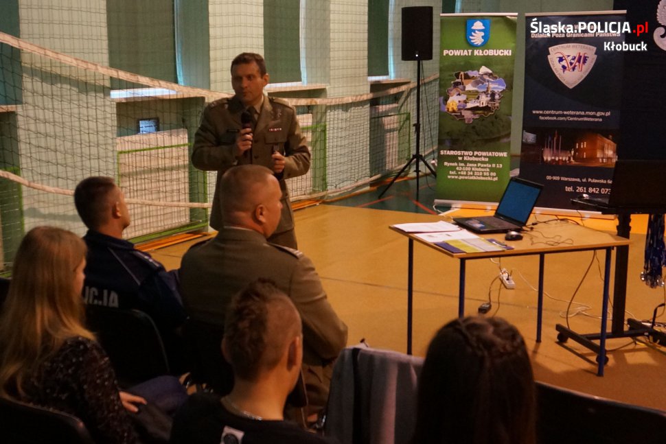 W minionym tygodniu w Zespole Szkół nr 3 w Kłobucku odbyło się spotkanie uczniów kłobuckich szkół ponadgimnazjalnych z przedstawicielami WKU w Częstochowie oraz z weteranami misji zagranicznych Wojska Polskiego. W organizację przedsięwzięcia włączyli się również kłobuccy policjanci, którzy przedstawili krótką prezentację związaną z kampanią „Z młodym kierowcą w drodze po doświadczenie”. W spotkaniu uczestniczył także szef mundurowych mł.insp. Tomasz Górka.