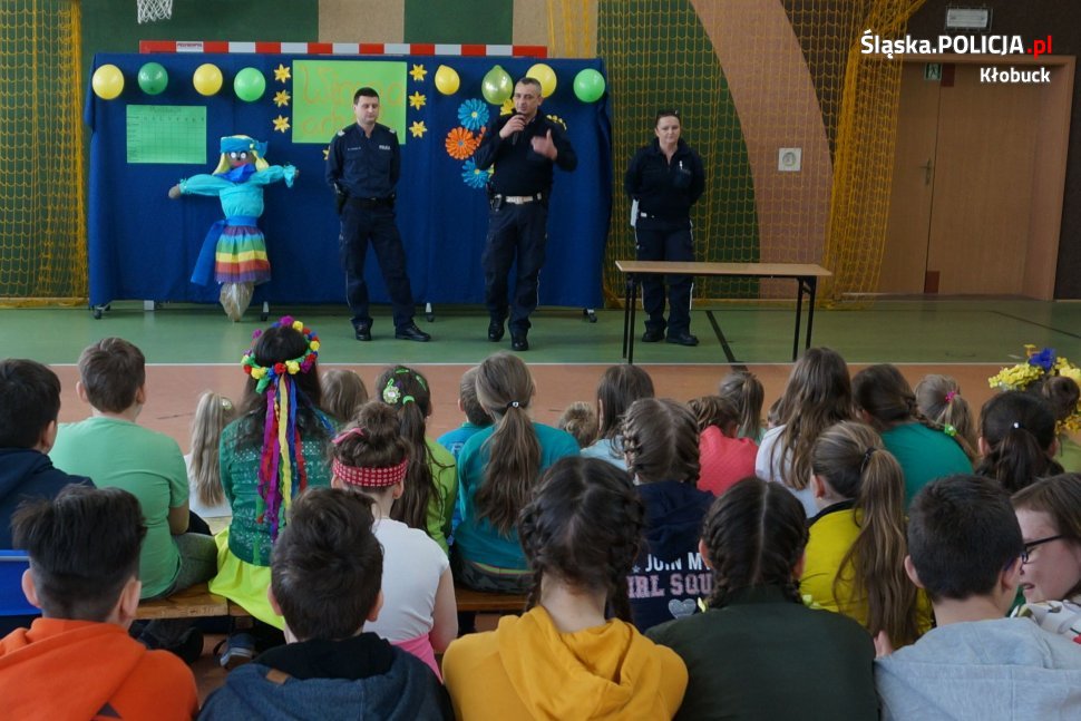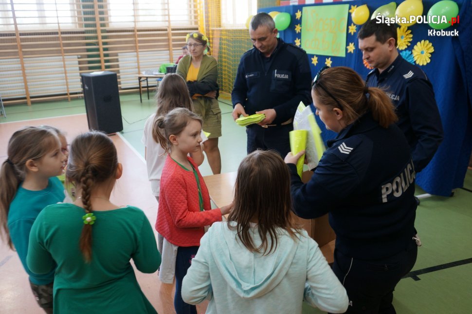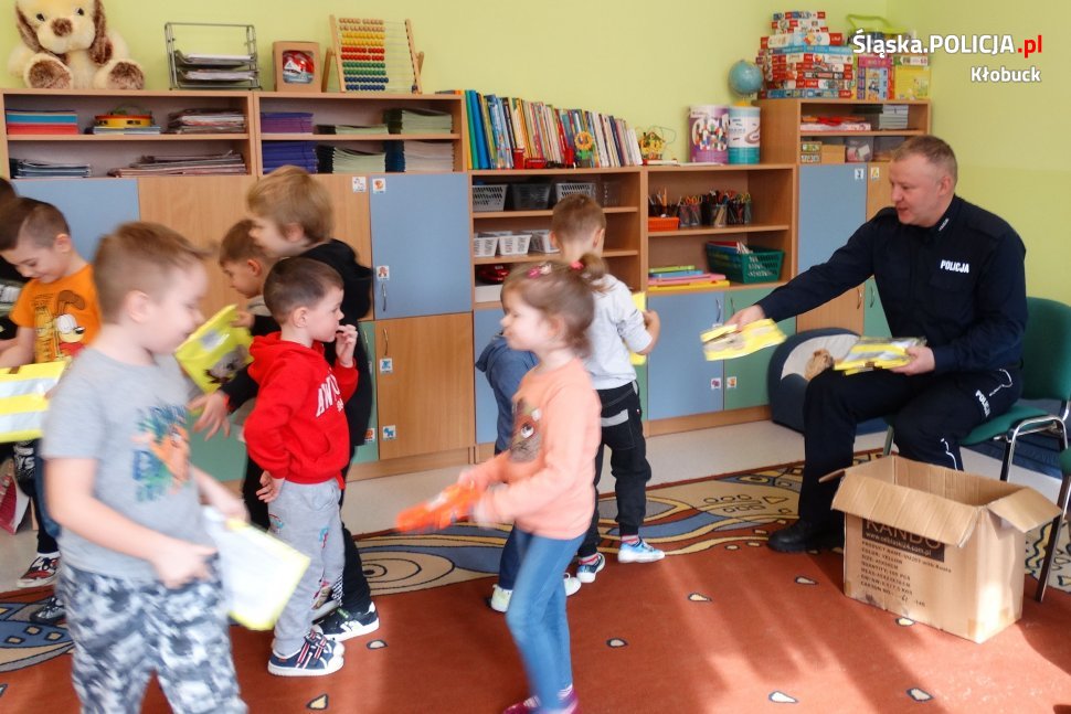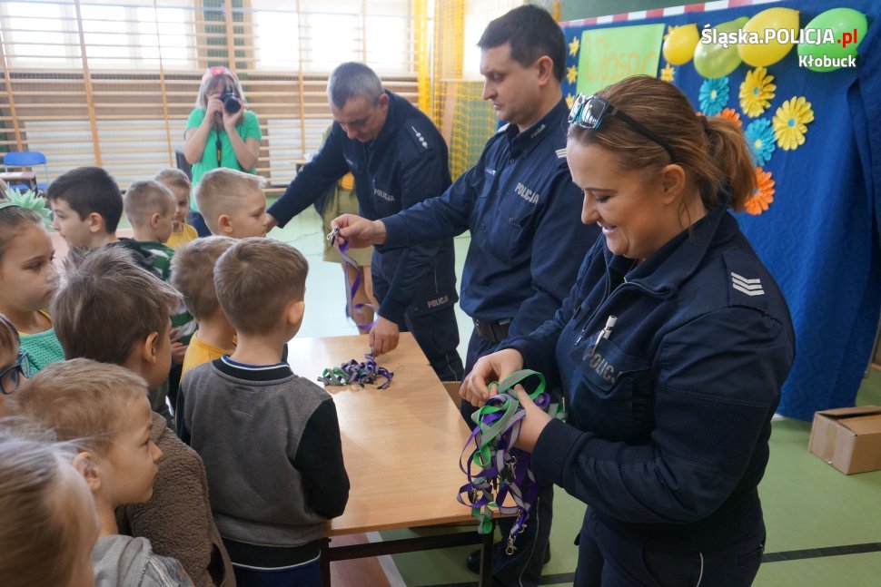 W minionym tygodniu policjanci z kłobuckiej drogówki wspólnie z dzielnicowym sierż.sztab. Pawłem Grzesiakiem odwiedzili Szkołę Podstawową w Borowym. Spotkanie miało na celu przypomnienie najmłodszym zasad bezpieczeństwa w ruchu drogowym. Tematem przewodnim wizyty było bezpieczeństwo pieszych i rowerzystów. Policjanci uczyli jak prawidłowo przechodzić przez jezdnię, która stroną drogi należy się poruszać, gdy nie ma chodnika, w co powinien być wyposażony rower oraz jak ważne jest noszenie odblasków. Ponadto stróże prawa tłumaczyli, jak należy postępować w kontakcie z nieznajomymi oraz co zrobić podczas ataku agresywnego psa. Na koniec wizyty z rąk stróżów prawa uczniowie i przedszkolacy otrzymali odblaski na rowery oraz odblaskowe smycze i opaski, które pozyskano dzięki bardzo dobrej współpracy wręczyckich dzielnicowych z lokalnym ośrodkiem pomocy społecznej.