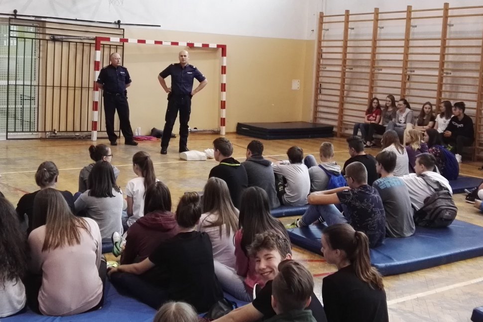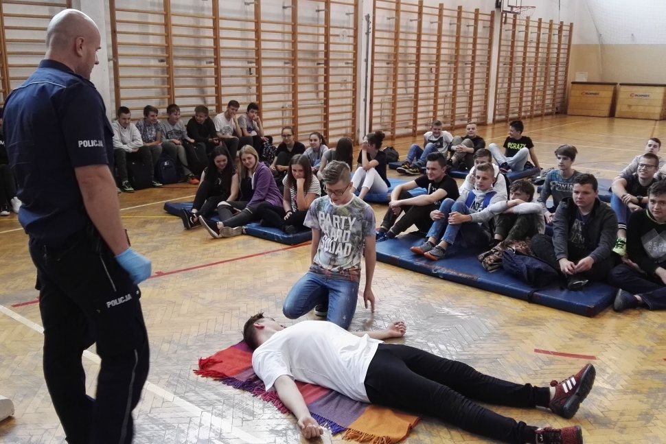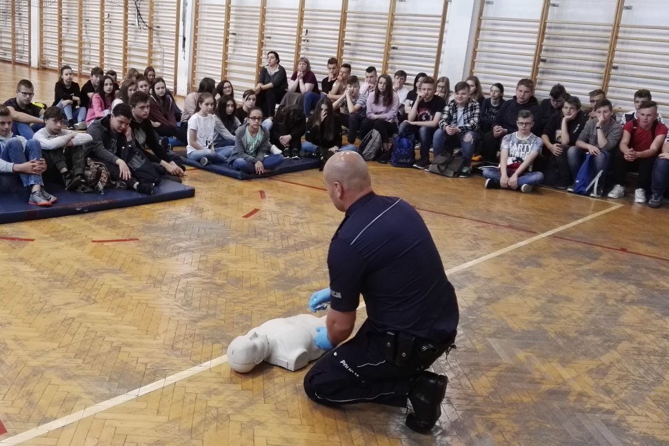 Spotkanie podzielone było na dwie części. Na początku policjant opowiedział o sytuacjach z życia codziennego, w których okazywało się, że umiejętność udzielania podstawowej pomocy przedmedycznej drugiemu człowiekowi pomogła uratować życie. Mundurowy podkreślał, że w sytuacjach kryzysowych, których nie da się zaplanować, ta umiejętność jest nie do przecenienia. Jednocześnie przekazał młodzieży, że ratowanie ludzkiego życia jest wartością nadrzędną, niezależnie od wieku i wykonywanego zawodu.