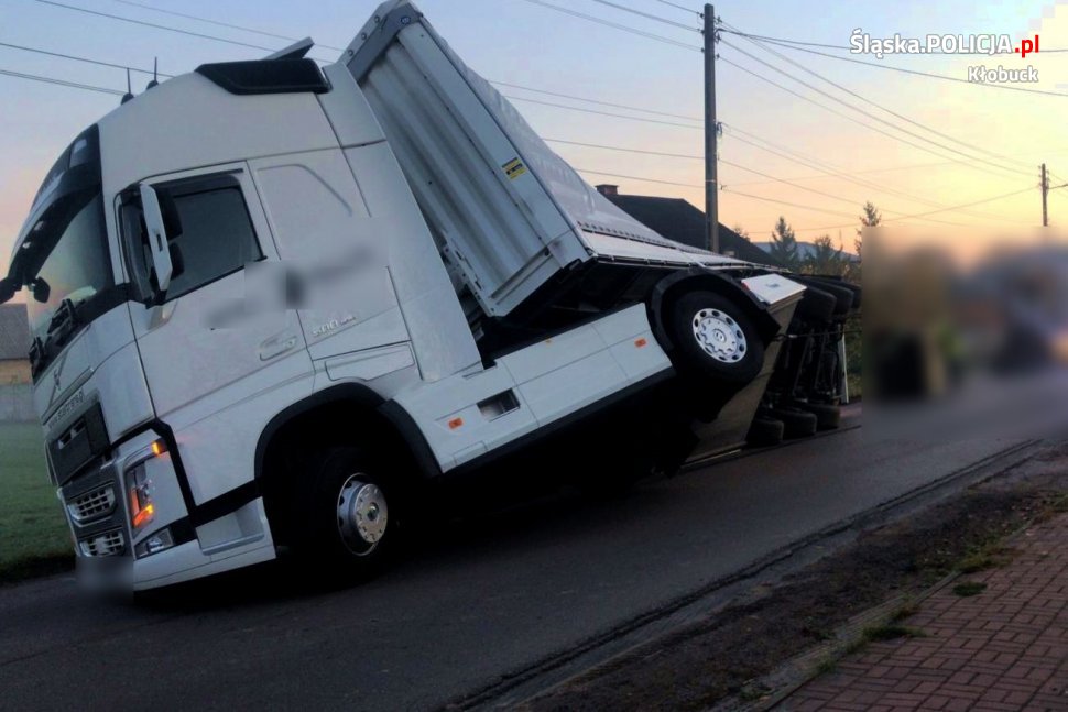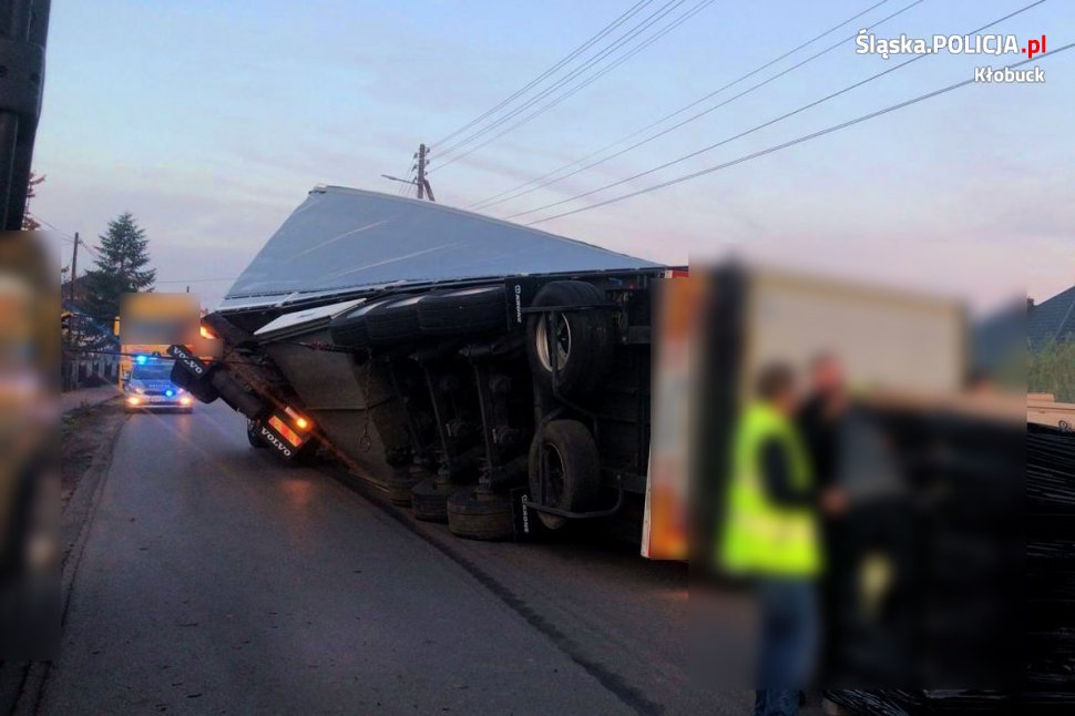 Do groźnego zdarzenia drogowego doszło dzisiaj około godziny 4.30 na ul. Tartakowej w Borowiance. Z ustaleń policjantów z drogówki wynika, że kierowca ciężarówki z naczepą, z nieustalonej przyczyny zjechał na pobocze drogi, stracił panowanie nad pojazdem, po czym wywrócił naczepę na jezdnię. Kierowca był trzeźwy i nie odniósł obrażeń. Aktualnie droga jest zablokowana - policjanci wyznaczyli objazd w kierunku Kuźnicy Kiedrzyńskiej przez miejscowość Kopiec.