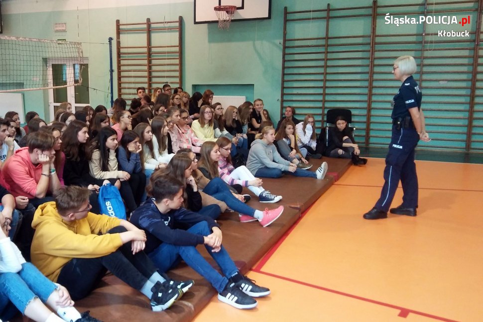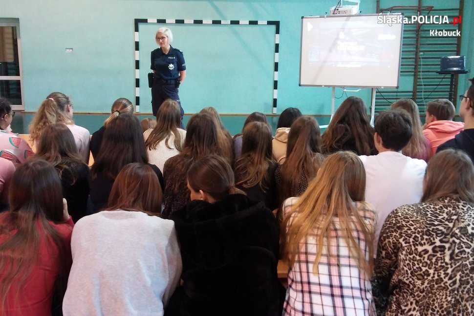 Profilaktyk społeczny kłobuckiej komendy, st. sierż. Marlena Wiśniewska spotkała się z uczniami Zespołu Szkół nr 3 w Kłobucku. Uczniowie tradycyjnie usłyszeli, jakie postępowanie może prowadzić do konfliktów z prawem, a także co grozi za łamanie obowiązujących przepisów. W czasie swojego wystąpienia policjantka zwróciła szczególną uwagę na zagrożenia i mowę nienawiści w sieci.