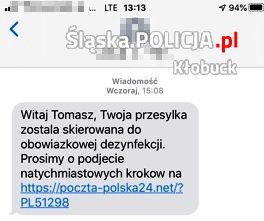 Oszuści ciągle modyfikują metody działań, szukając kolejnych pomysłów i sposobów, by okraść swoje ofiary. Ostatnio w województwie śląskim przestępcy wypróbowywali nową metodę. Wysyłali do ludzi wiadomość tekstową o treści: „Twoja przesyłka została skierowana do obowiązkowej dezynfekcji”. W treści wiadomości sms zawarta była również informacja o konieczności opłaty za dezynfekcję przesyłki. Żeby dokonać tej opłaty, należało skorzystać z załączonego linku z wiadomością.