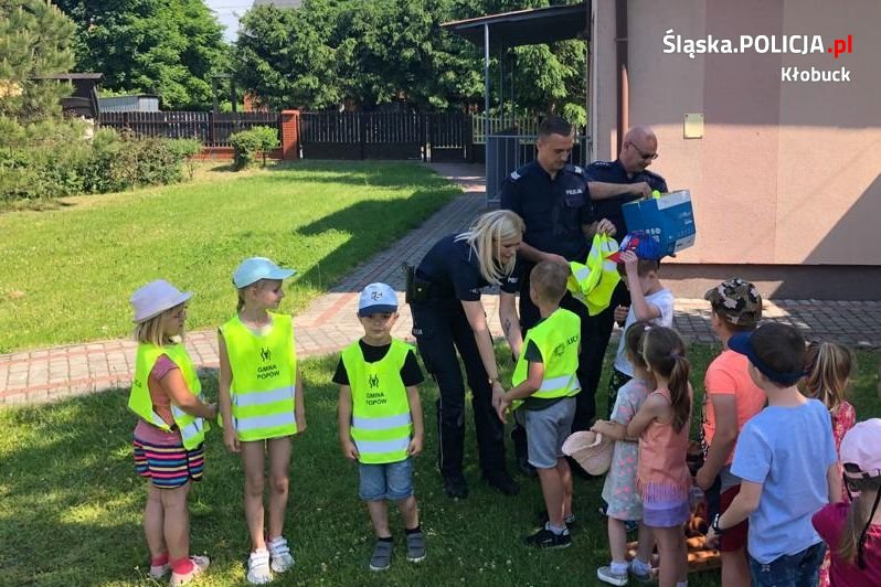 Od początku czerwca policjanci z kłobuckiej komendy zajmujący się profilaktyką odwiedzają szkoły i przedszkola gdzie promują bezpieczeństwo przed zbliżającymi się wakacjami. W ich działania włączyli się również dzielnicowi, którzy uczestniczył w spotkaniach z najmłodszymi mieszkańcami Gminy Popów. Podczas ciekawych zajęć profilaktycznych, przedszkolaki otrzymały odblaskowe kamizelki, które zostały przekazane przez Urząd Gminy w Popowie.