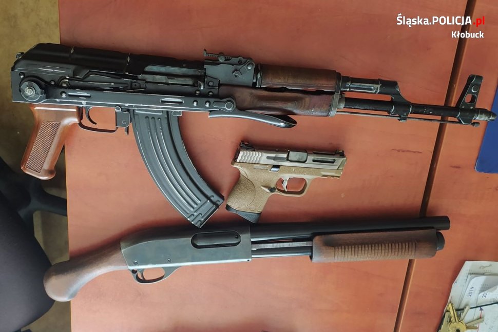 Kłobuccy policjanci niezwłocznie po otrzymaniu nagrania podjęli czynności procesowe i jeszcze tego samego dnia ustalili tożsamość kierującego samochodem osobowym oraz dokonali przeszukania w jego miejscu zamieszkania. Kierującym okazał się 39-letni mieszkaniec powiatu kłobuckiego. U mężczyzny zabezpieczono 3 przedmioty przypominające broń palną, w tym jeden z magazynkiem na kulki plastikowe oraz atrapy amunicji myśliwskiej. Zabezpieczone przedmioty to prawdopodobnie repliki broni palnej. Opinia biegłego z zakresu broni i balistyki określi dokładnie czy mogły one służyć do oddania strzału. O dalszym losie mężczyzny zadecyduje teraz prokurator. Przypominamy, że za nielegalne posiadanie broni palnej grozi do 8 lat pozbawienia wolności.
