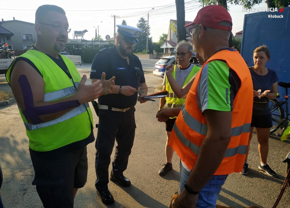 W sobotę policjanci z kłobuckiej drogówki zabezpieczali przejazd ponad 60 rowerzystów, uczestników pielgrzymki rowerowej z Fałkowic. Dbając o bezpieczeństwo niechronionych uczestników ruchu drogowego, mundurowi przypomnieli podstawowe zasady bezpiecznej jazdy na rowerze oraz rozdali elementy odblaskowe cyklistom.