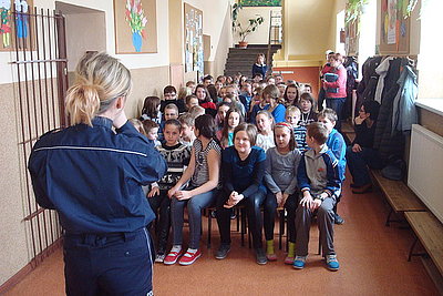 Wczoraj w Szkołach Podstawowych w Złochowicach i Opatowie policjantka naszej komendy przeprowadziła prelekcje dotyczące bezpieczeństwa. Podczas spotkań z uczniami omówione zostały sposoby zachowania się w trudnych sytuacjach, np. w kontakcie z agresywnym psem. Dzieci dowiedziały się czego nie wolno robić oraz w jaki sposób obronić się przed atakiem zwierzęcia. W tym celu zaprezentowana im została pozycja „żółwia” mającą zapewnić maksimum bezpieczeństwa zaatakowanej osobie.