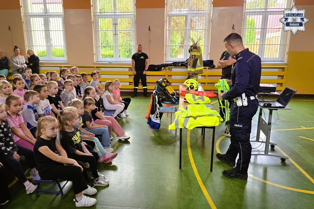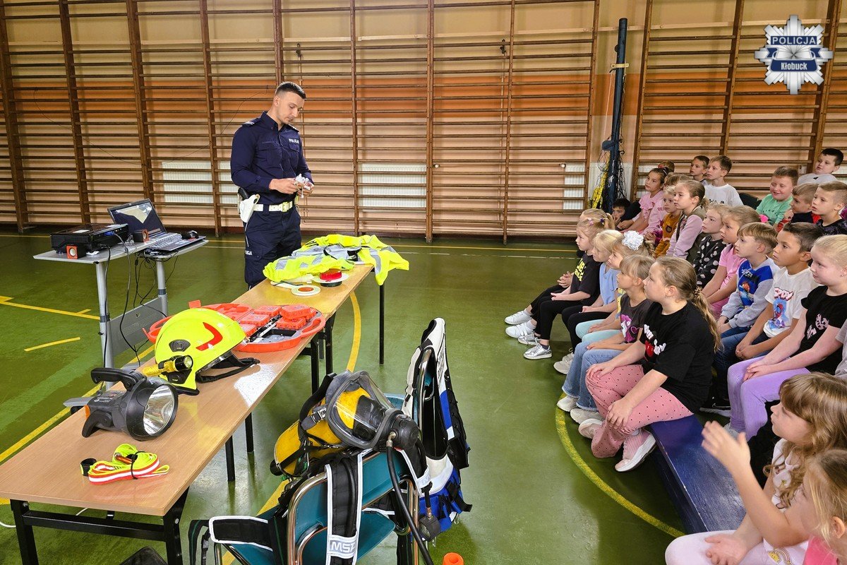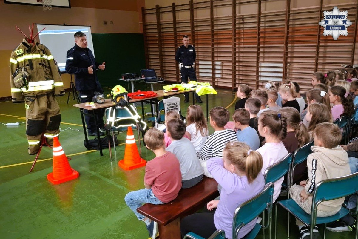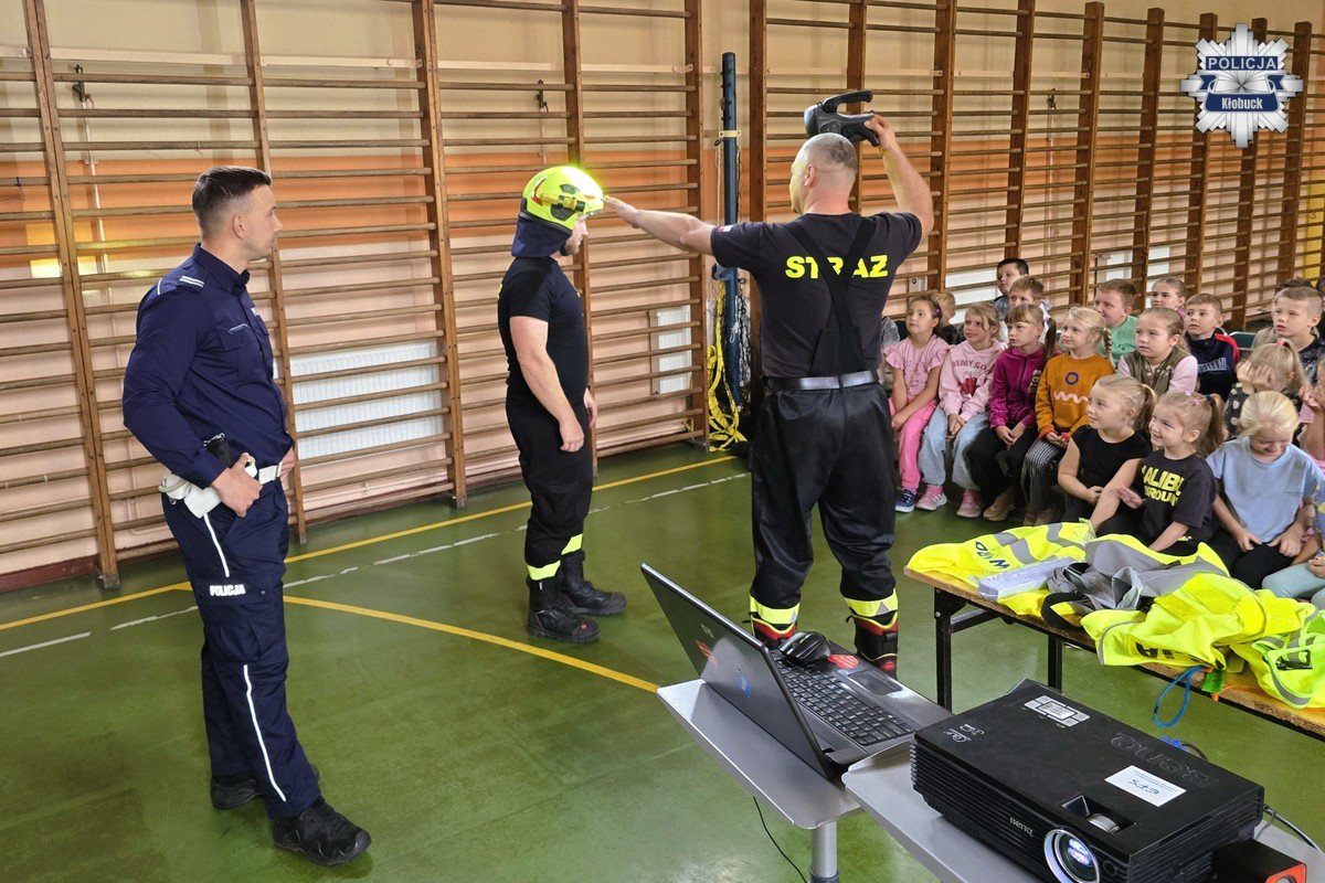Spotkanie w Szkole Podstawowej imienia Władysława Reymonta w Starokrzepicach zostało przeprowadzone we współpracy z druhami z Ochotniczej Straży Pożarnej oraz policjantem z kłobuckiej drogówki. Uczniowie klas I–III poznali zasady bezpiecznego poruszania się po drogach, dowiedzieli się, jak prawidłowo korzystać z hulajnóg elektrycznych oraz dlaczego noszenie elementów odblaskowych po zmroku jest tak ważne dla ich bezpieczeństwa zgodnie z założeniami kampanii „Świeć Przykładem – Noś Odblaski”!