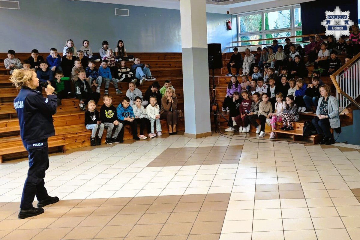 Policjantki z Komendy Powiatowej Policji w Kłobucku odwiedziły Szkołę Podstawową nr 1 w Krzepicach. Aspirant sztabowy Agnieszka Furgalska oraz aspirant Aleksandra Śledziona spotkały się z uczniami wszystkich klas, by porozmawiać o bezpieczeństwie, przemocy i odpowiedzialności karnej nieletnich. Zajęcia wpisywały się w ogólnopolską kampanię „Dzieciństwo bez przemocy”.