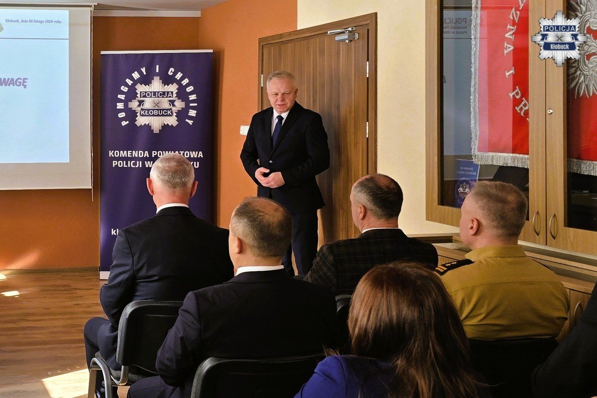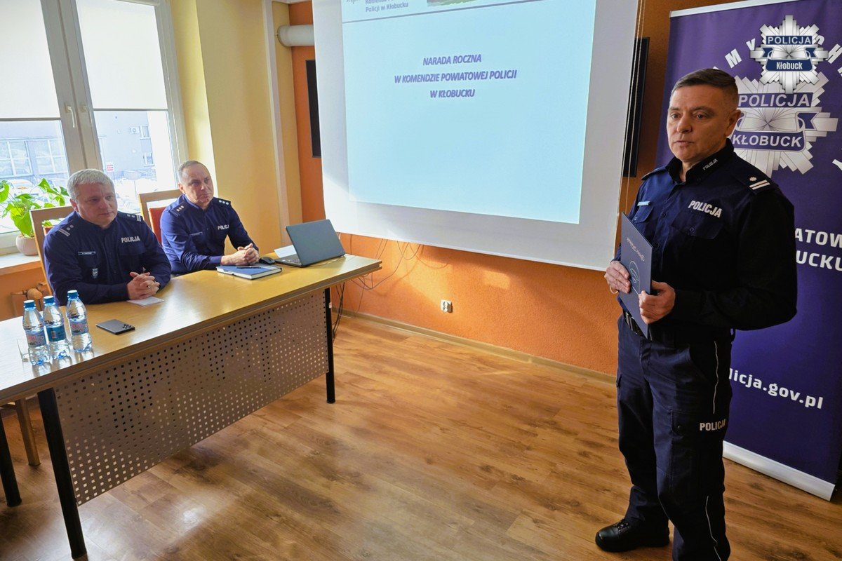 W poniedziałek 9 lutego w Komendzie Powiatowej Policji w Kłobucku odbyła się roczna odprawa podsumowująca pracę policjantów oraz pracowników cywilnych garnizonu kłobuckiego. Spotkanie było okazją do omówienia stanu bezpieczeństwa na terenie powiatu oraz przedstawienia efektów działań podejmowanych w minionym roku. W odprawie uczestniczyli przedstawiciele władz państwowych i samorządowych, a także instytucji współpracujących z Policją.