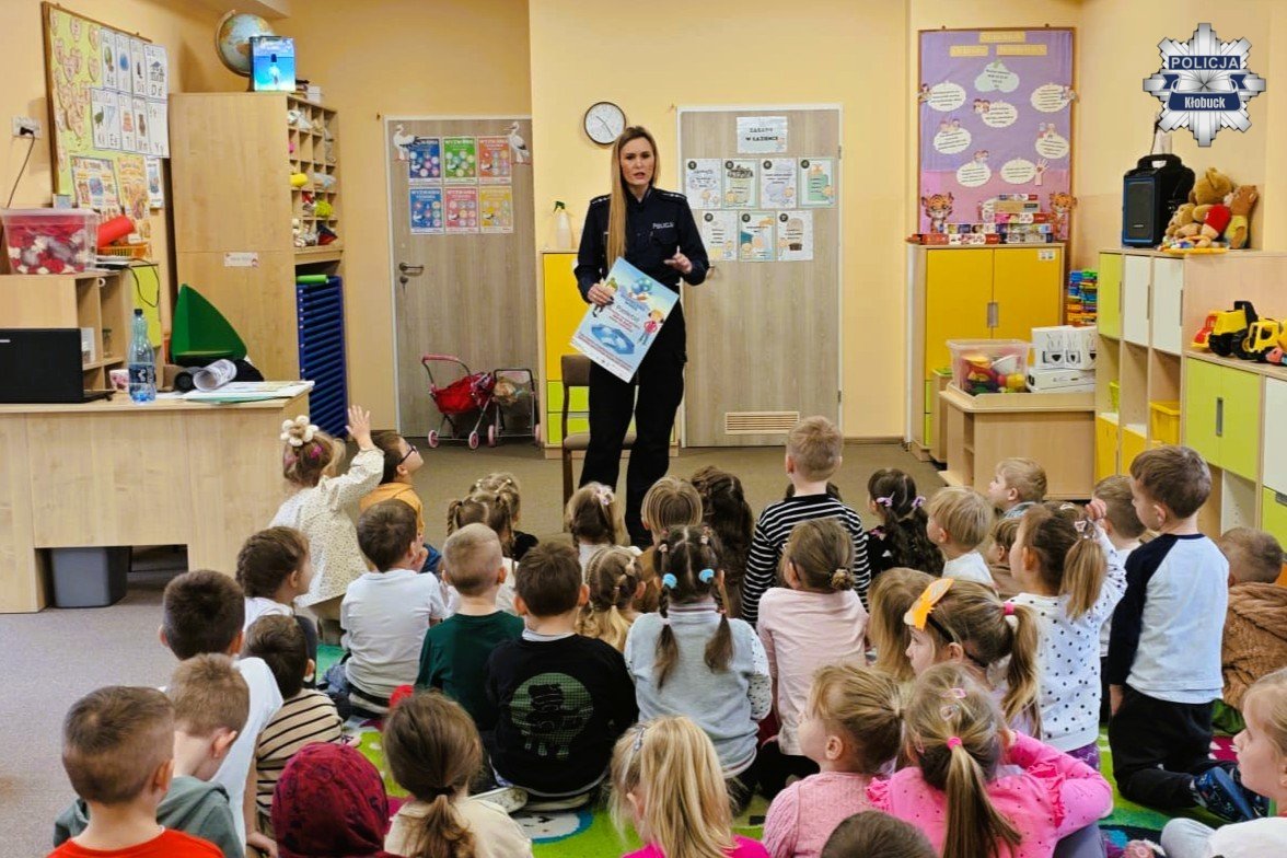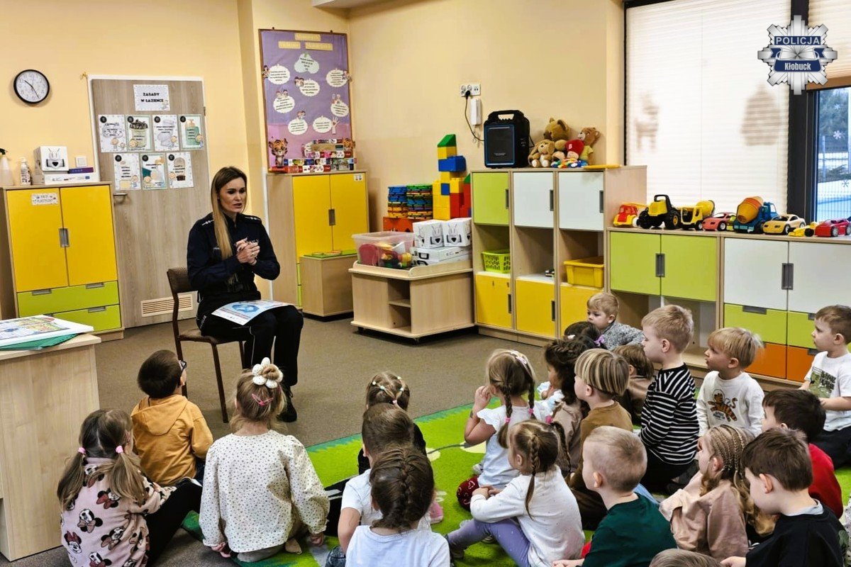 Policjanci z Komendy Powiatowej Policji w Kłobucku w ramach akcji „Bezpieczne Ferie 2026” prowadzą liczne prelekcje z dziećmi. Stróże prawa spotykają się z najmłodszymi głównie w przedszkolach i szkołach, gdzie realizowane są półkolonie, aby przypomnieć im o najważniejszych zasadach zarówno bezpiecznej zabawy, jak i właściwego poruszania się po drodze.