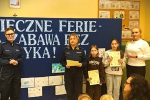 Podczas spotkań mundurowe zwracały szczególną uwagę na to, że ferie zimowe to czas trudnych warunków atmosferycznych - wcześniej zapada zmrok, poruszanie po drogach wymaga większej ostrożności, a niska temperatura powietrza oraz niewłaściwa zabawa na śniegu czy lodzie może stanowić zagrożenie dla życia i zdrowia. Policjantki przekazały dzieciom jak najwięcej przydatnych wskazówek na temat ich bezpieczeństwa w czasie przerwy w nauce podkreślając, że:
